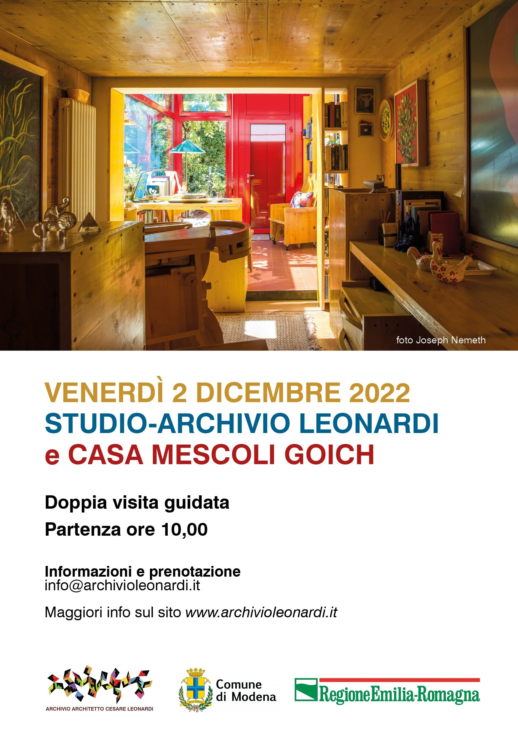 Venerdì 2 dicembre dalle ore 10:00 alle ore 12:30 la Fondazione Leonardi organizza una visita guidata a due architetture modenesi di Cesare Leonardi: casa Mescoli-Goich, progettata tra il 1983 e il 1993, e la casa-studio, dove Leonardi si trasferisce alla fine degli anni Ottanta e dove dal 2015 ha sede l’archivio.